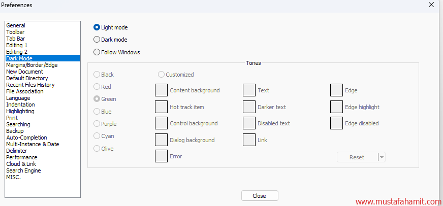 Eğer Windows’u zaten dark mode kullanıyorsunuz “Follow Windows” yapabilirsiniz. Böylece otomatik olarak Dark Mode olacaktır.