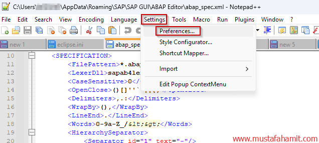 Settings -> Preferences…