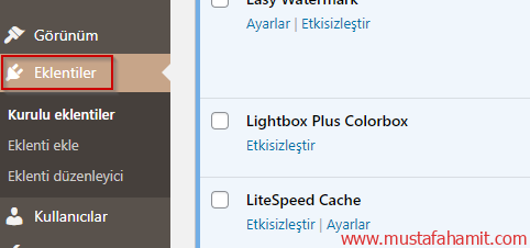 Sonrasında eklentiler sayfasından bu eklenti gitmiş olacaktır.