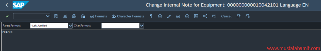 Sonrasında eğer metni değiştirmek isterseniz, hata olmadan kaydedip değiştirebilirsiniz. Ben IE02 T-Code’u kullanırken bu sorunla karşılaşmıştım.